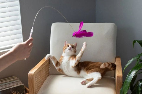 However, it is worth noting that this type of cat teasing stick usually has a short "life", and the feathers on the other end of the rope can easily be bitten off by cats. So after playing, remember to put away the cat teasing stick - so that the cat can be excited to get the cat teasing sticks. Remember to play with your cat under human supervision in case anything unexpected happens.