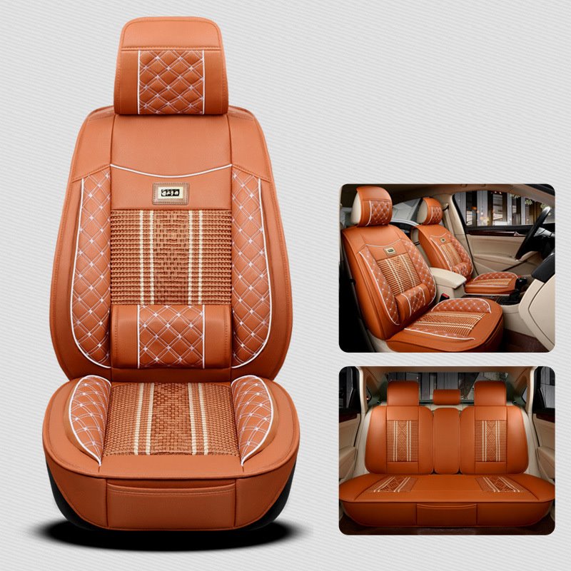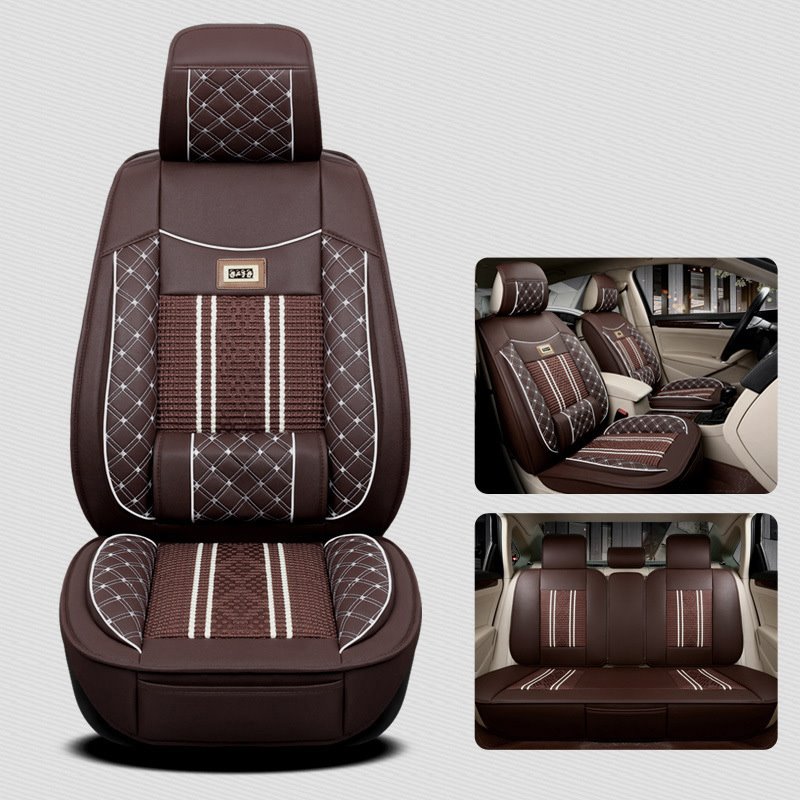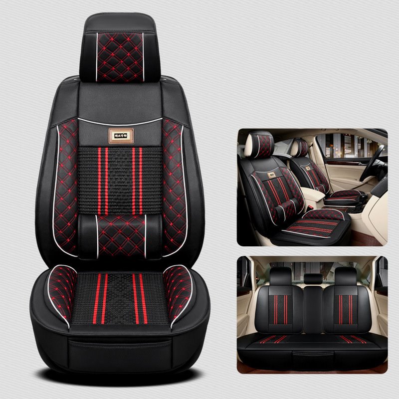 5 Sitze, hochwertiges, verschleißfestes Leder, Eisseide, Sommer, kühl, hautfreundlich, umweltfreundlich, langlebig, leicht zu reinigen, universelle Passform