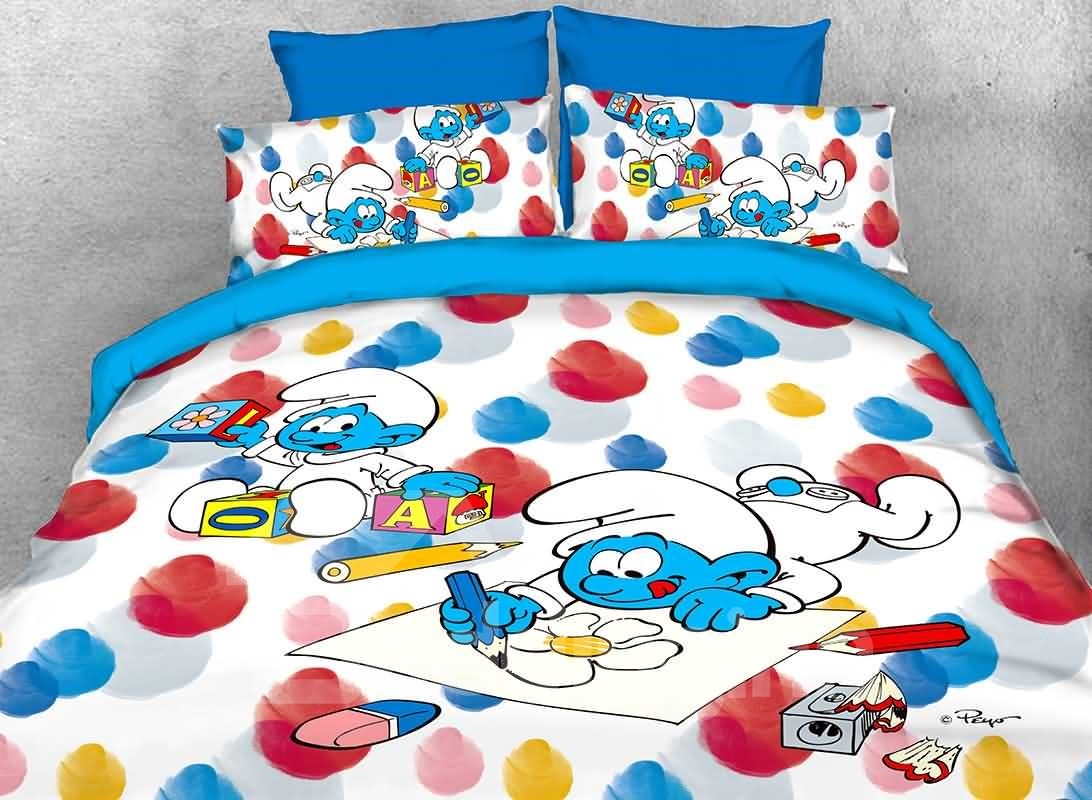 Baby Schlumpf malt Blumen und Bausteine, 4-teiliges Bettwäsche-Set/Bettbezüge