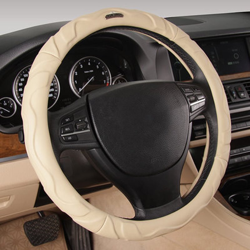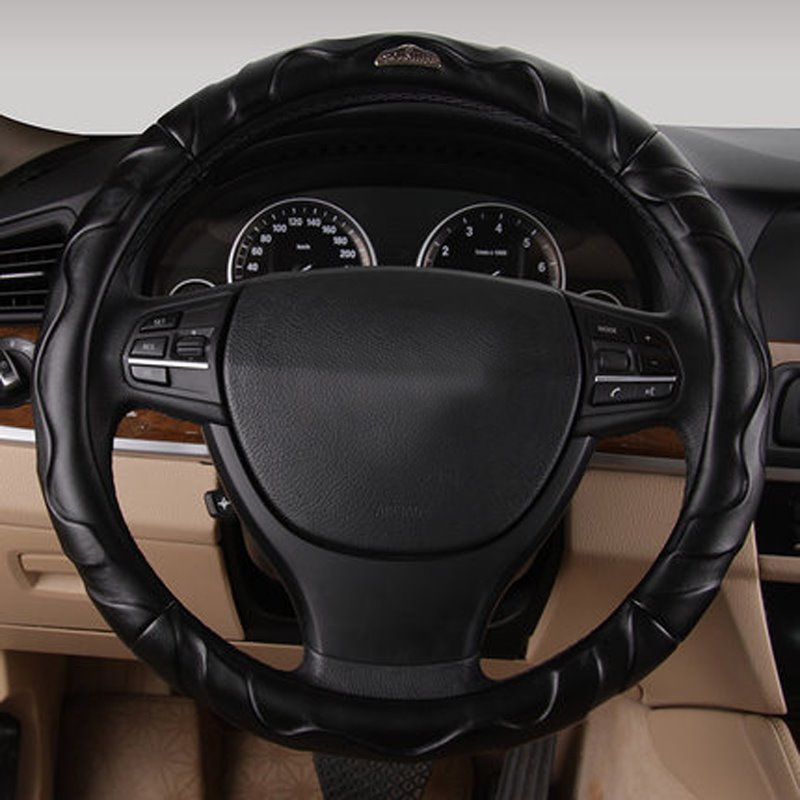 Strapazierfähiges PU-Ledermaterial mit schönen Bogenlinien. Mittelgroße Auto-Lenkradabdeckung, geeignet für die meisten runden Lenkräder
