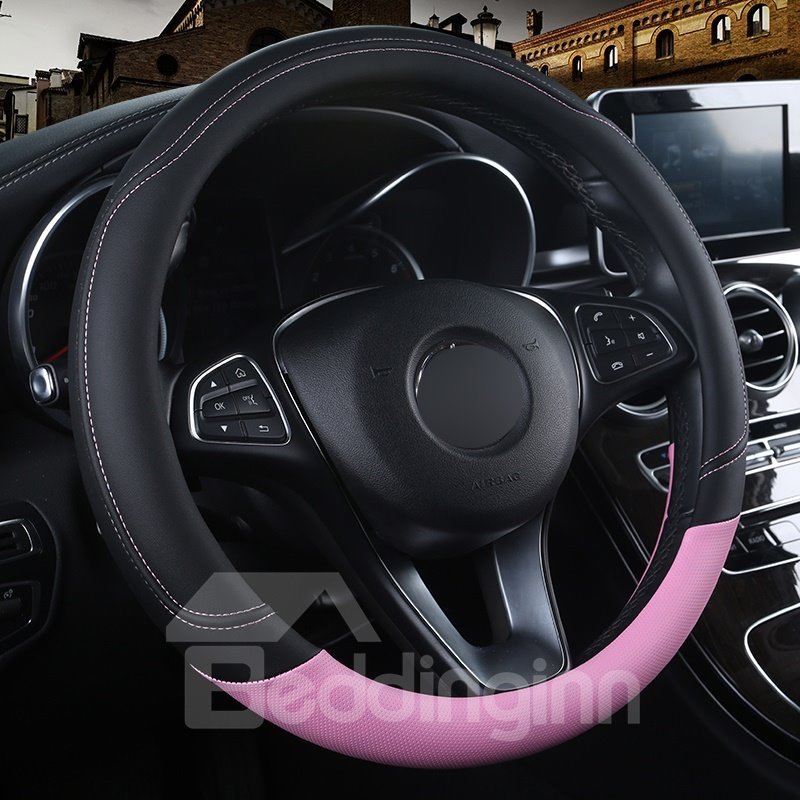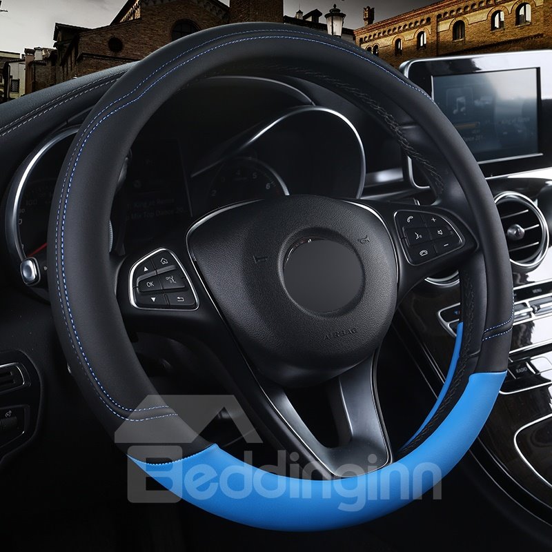 Modischer Stil, zwei Farben gemischt, weiches PU-Leder, Massage, atmungsaktiv, rutschfest und geruchsfrei, Lenkradbezug