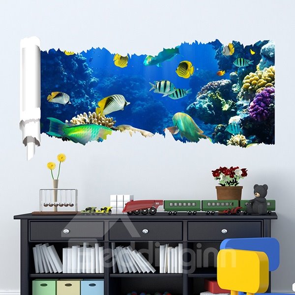 Neu eingetroffene 3D-Wandaufkleber mit Meeres- und Fischmuster