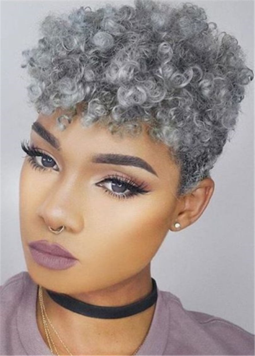 Kurze Pixie Cut Afro Kinky Curly 100 % Echthaar-Perücken ohne Kappe