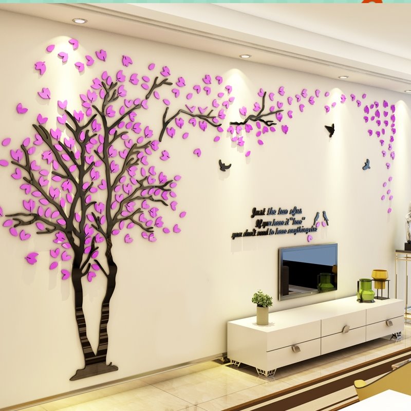 Etiqueta engomada de la pared 3D de la sala de estar del lado izquierdo del patrón del árbol del material acrílico de 4 colores