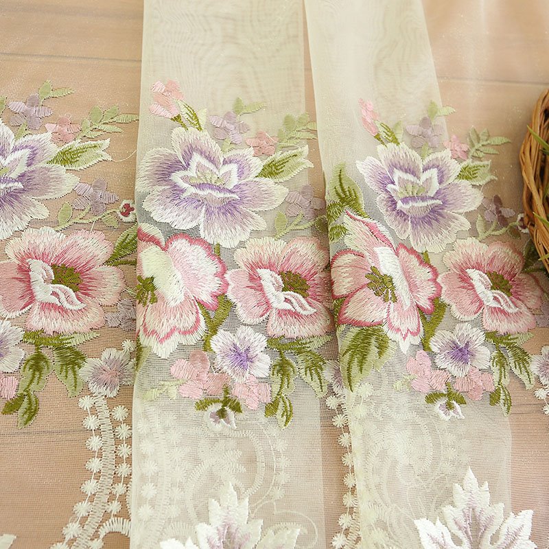 Cortinas transparentes con bordado floral, color beige, nobles y elegantes, para decoración de sala de estar y dormitorio, 2 paneles personalizados, cortinas de gasa transpirables
