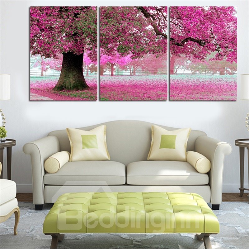 This large framed prints perfect for your home. Beautiful scene give you vitality every time coming back home from work. The material canvas is easily wiped with a damp cloth and it is waterproof. This product consists of three pieces, whose size is 11.8*17.7in. Three squares should be placed horizontally. You can hang them on the decorative wall of any rooms.