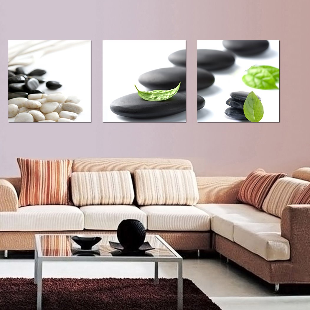 16¡Á16in Wonderful Simple Black Stone 3-Pieces of Crystal Film Art Wall Print