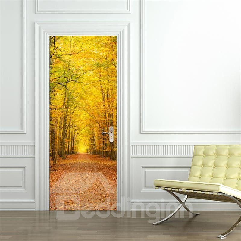30¡Á79in Yellow Trees and Path PVC Environmental and Waterproof 3D Door Mural