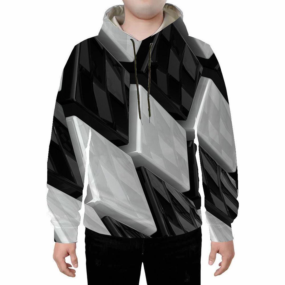 3D Black and White Color Block Printed Black Hoodie Sweatshirts Sweatpants Tracksuits Streetwear Sets Casual Print Spring Fall Winter Men's Outfit