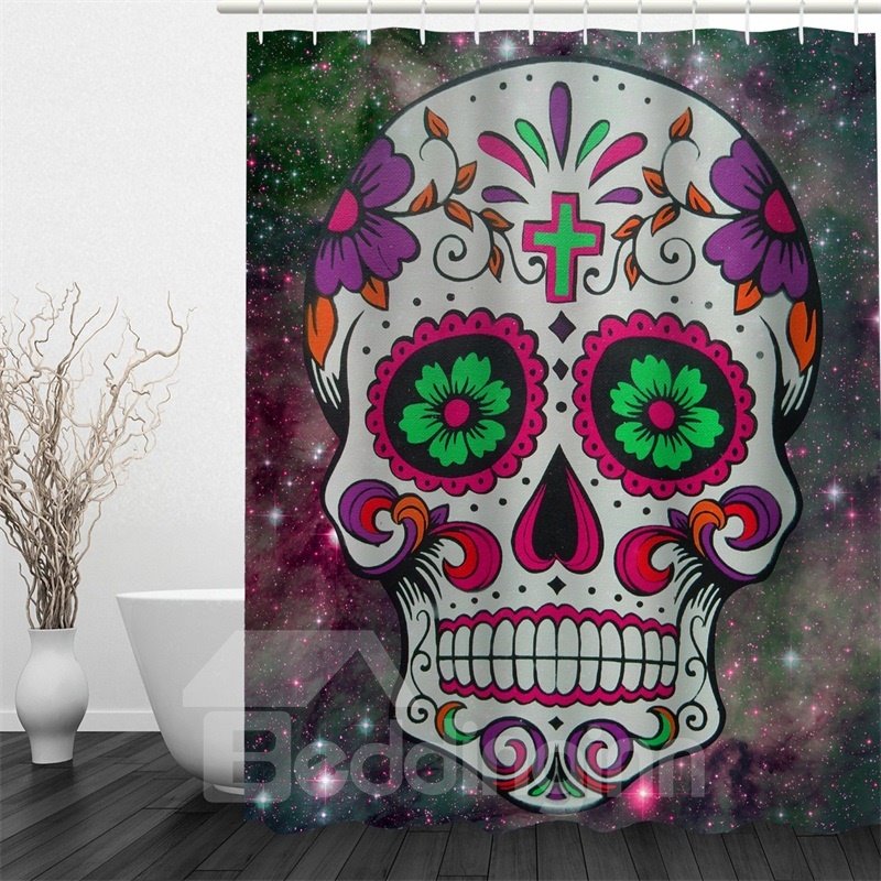 3D Floral Skull Printed Polyester Waterproof Antibacterial and Eco-friendly Shower Curtain
