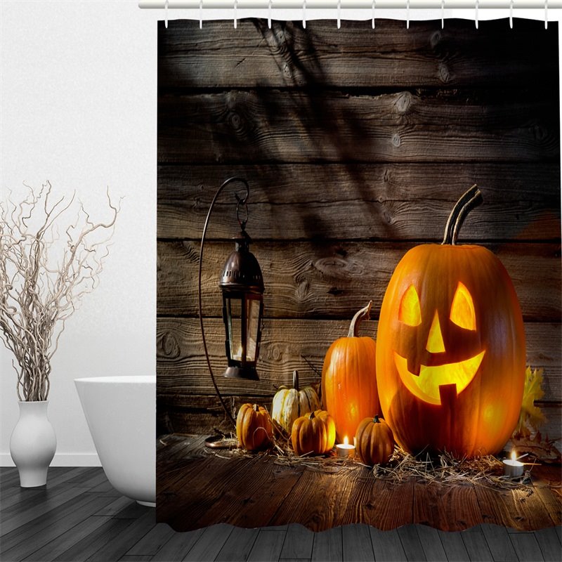 3D Halloween Jack-o-Lanterns Printed Polyester Waterproof Antibacterial and Eco-friendly Shower Curtain