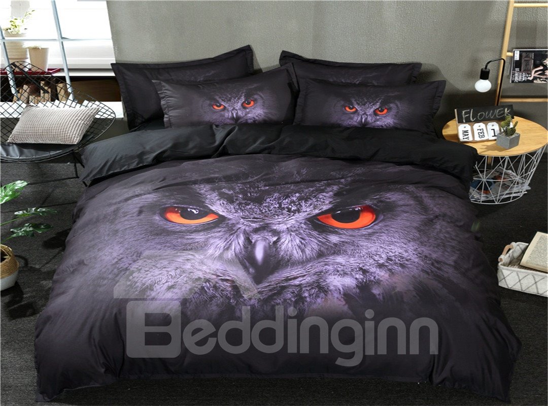 3D Owl Printed Polyester 3-Piece Dark Gray Bedding Sets/Duvet Covers