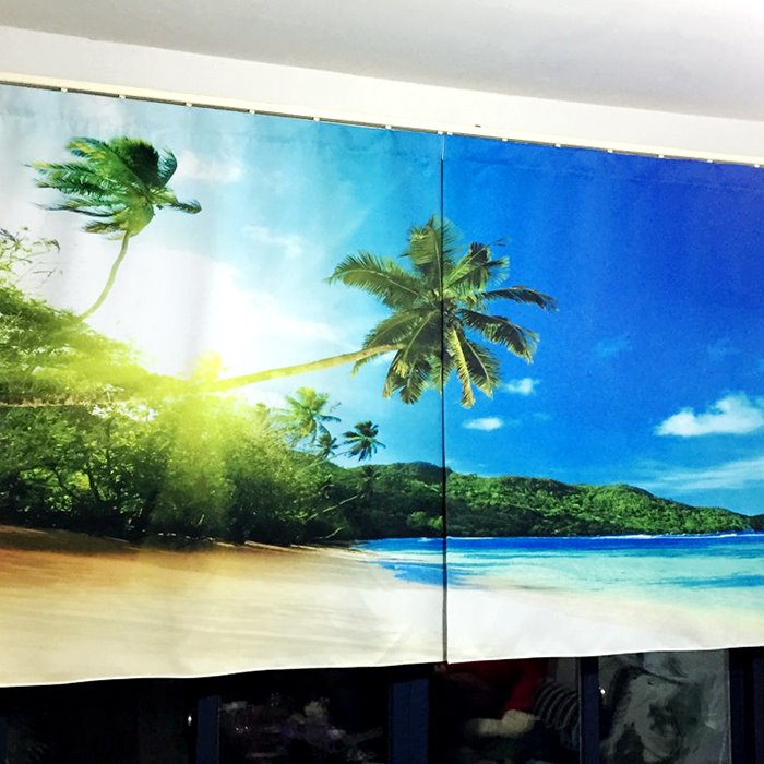 3D Palm Trees with Beautiful Beach Scenery Printed Polyester Custom Curtain