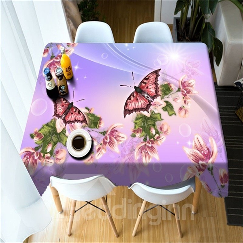 3D Pink Flowers and Beautiful Butterflies Printed Pastoral Style Table Cover