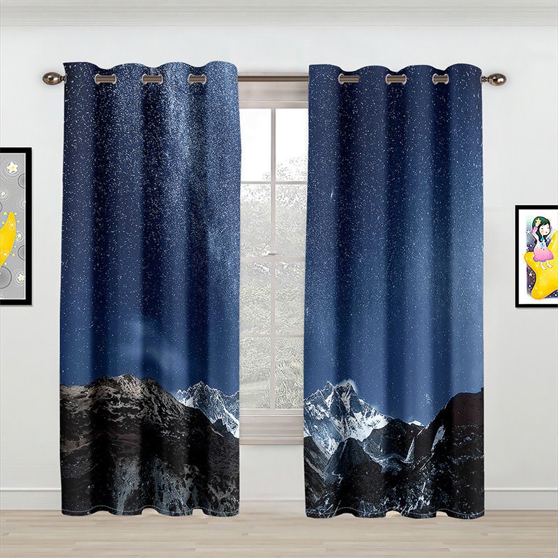 3D Print Blackout Curtains Starry Sky Modern Custom 2 Panels Drapes for Living Room Bedroom 2 Panels Grommet Top
