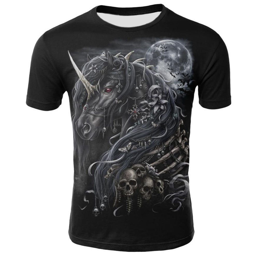 3D Print Cool Horse and Skull Black Men's T-shirt Creative Casual Couple Outfit Unisex Short Sleeve Round Neck Loose T-shirts