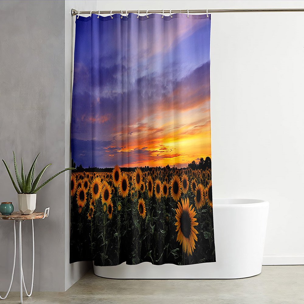 3D Printed Landscape Shower Curtain Sunflowers and Beautiful Sunset Bathroom Partition Curtain Durable Waterproof Mildew Proof Polyester