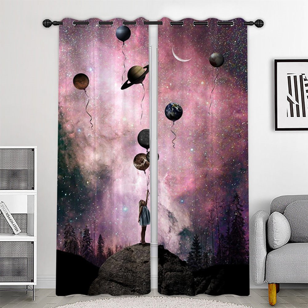 3D Printed Purple Universe Galaxy Blackout Scenery Curtains Custom 2 Panels Drapes for Living Room Bedroom No Pilling No Fading No off-lining Polyester