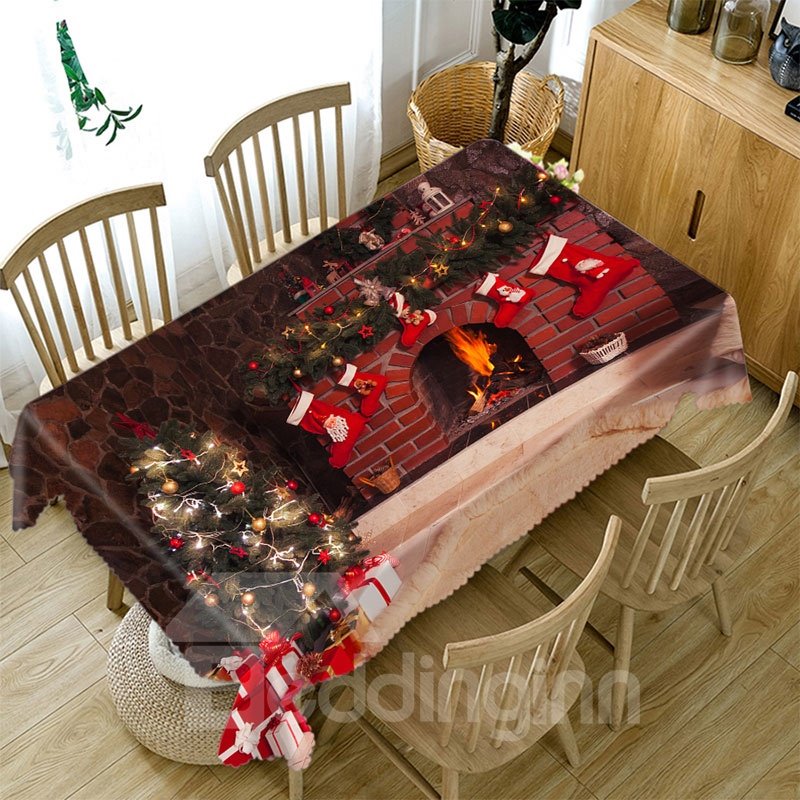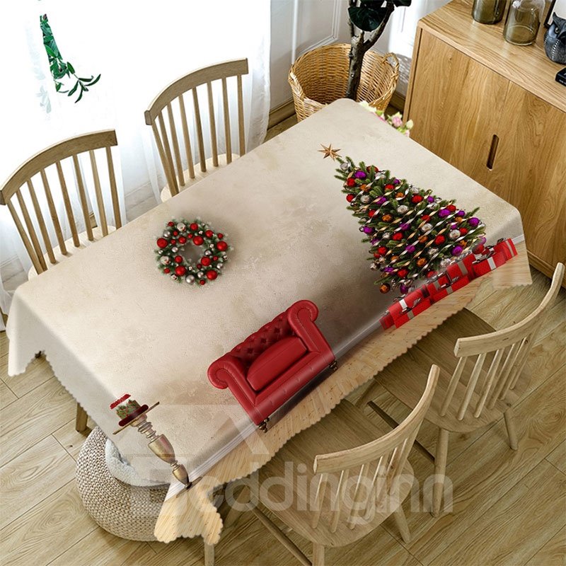 3D Tablecloth Christmas Tree And Red Sofa Pattern Unfading Wear Resistant Oil-Proof Water-Proof Suitable For Home Hotel Outdoors Party