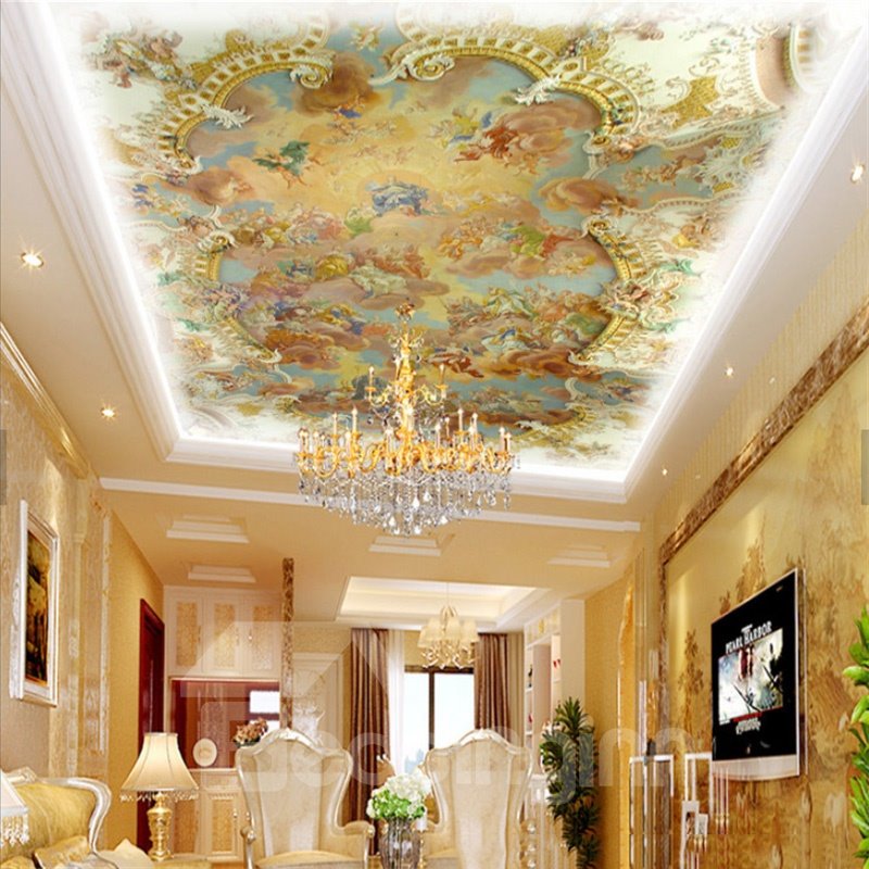 3D Yellow Angels Pattern PVC Waterproof Sturdy Eco-friendly Self-Adhesive Ceiling Murals