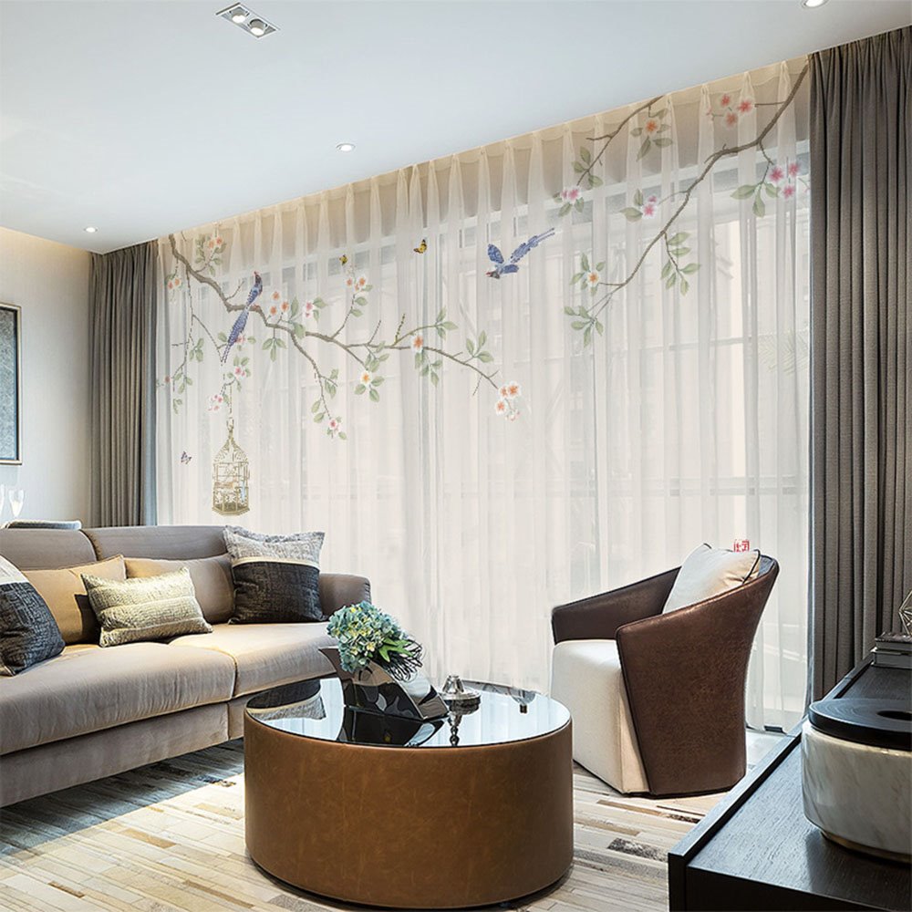 3D Print Plants and Birds Sheer Curtains Decoration 2 Panels Chiffon Sheer for Living Room 30% Shading Rate No Pilling No Fading No off-lining