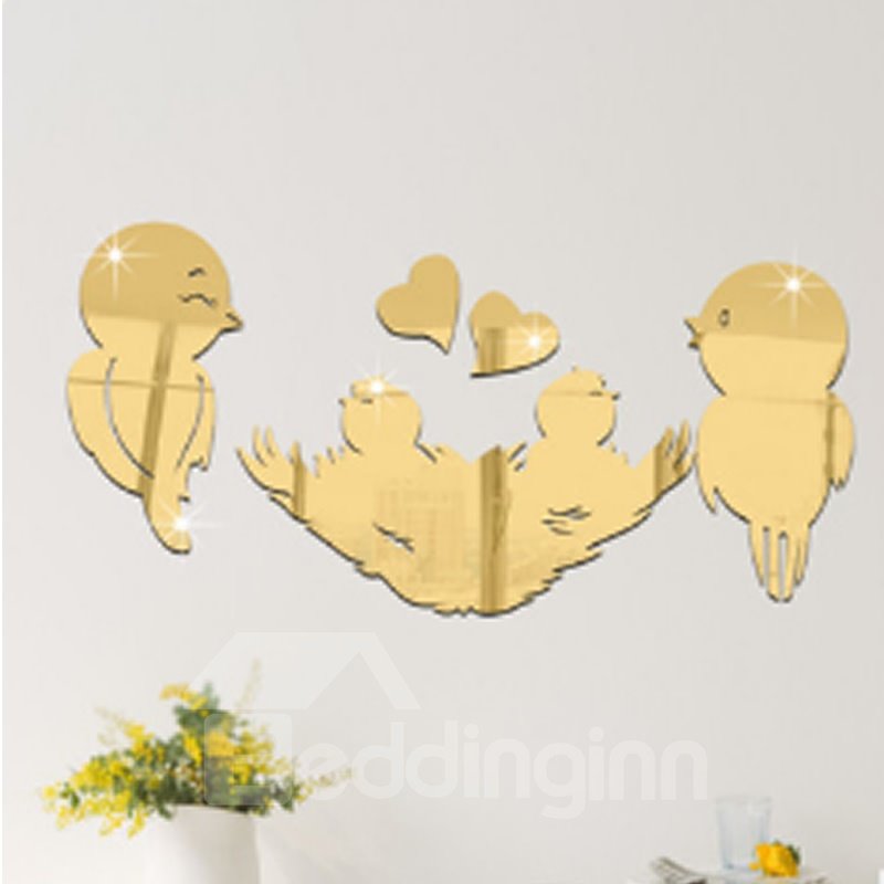 9¡Á18in Birds and Heart Shapes Mirror Waterproof and Eco-friendly 3D Wall Stickers