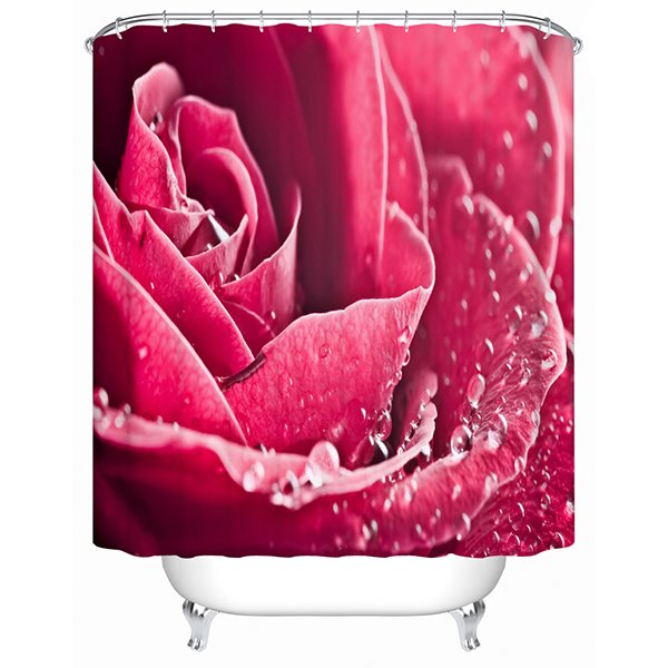 A Pink Rose Blooming Print 3D Bathroom Shower Curtain