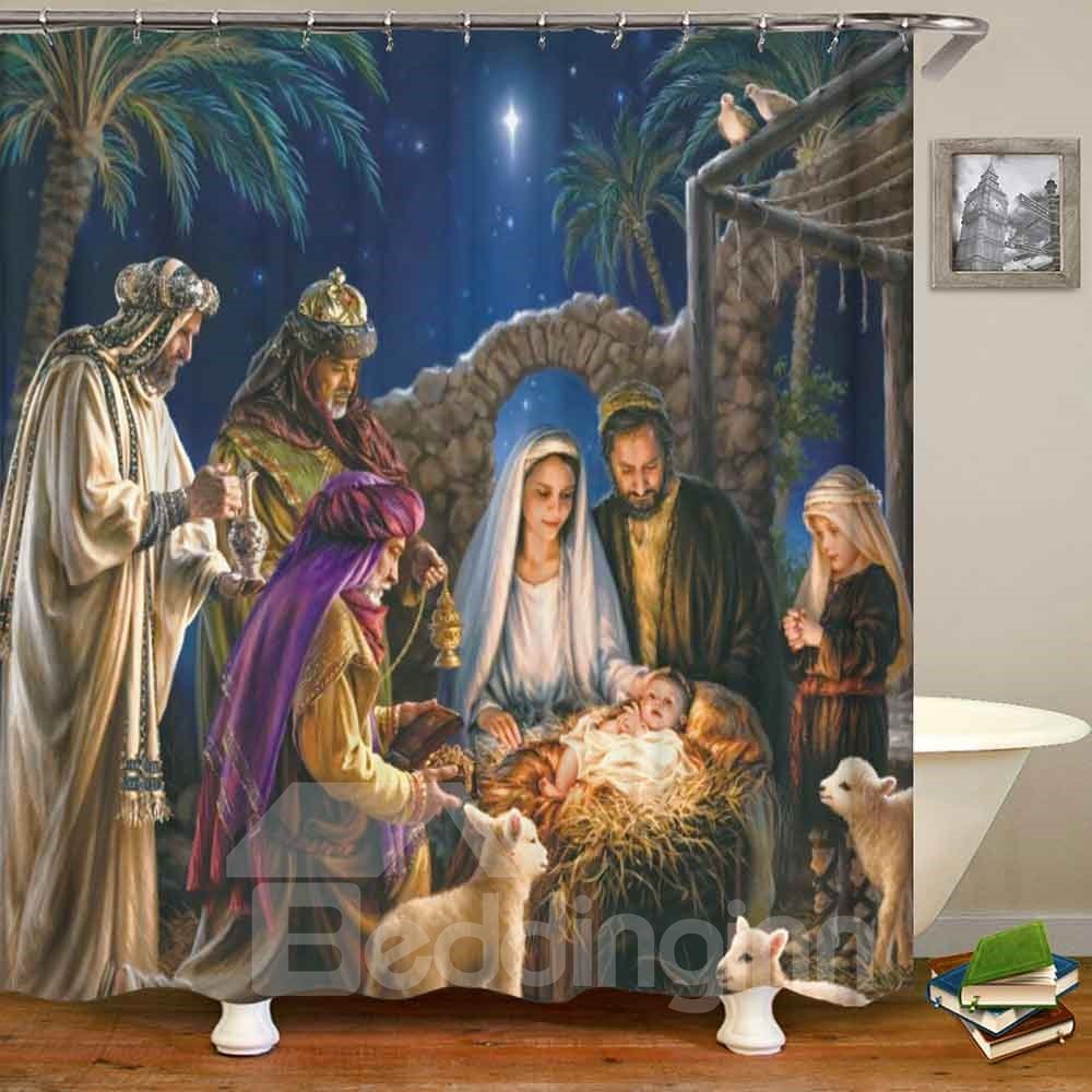 Baby Baptism Sheep Pattern Anti-Bacterial Bathroom Shower Curtain