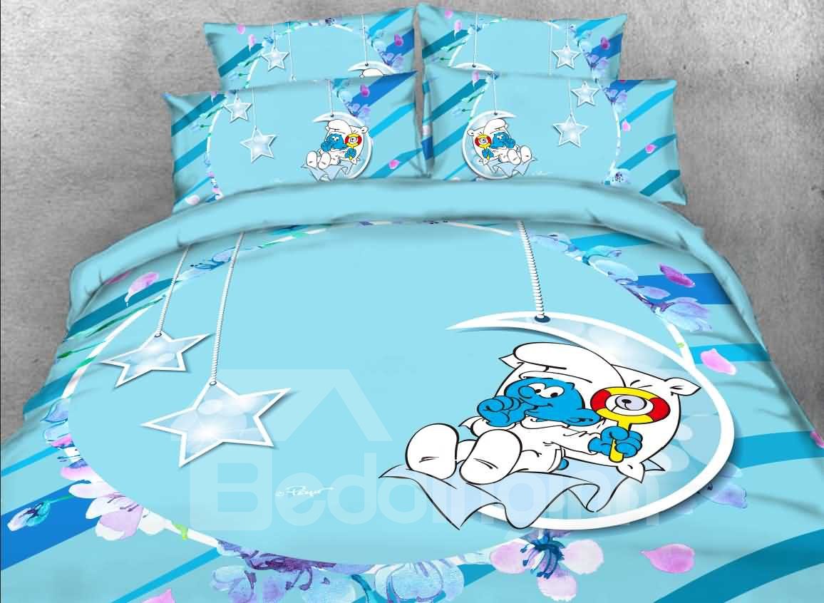 Baby Smurf with Moon Stars Printed Twin 3-Piece Kids Bedding Sets
