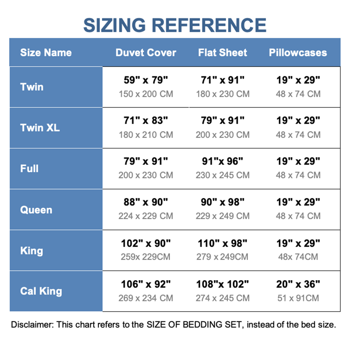 - Set contains 1 duvet cover, 1 flat sheet and 2 pillowcases.