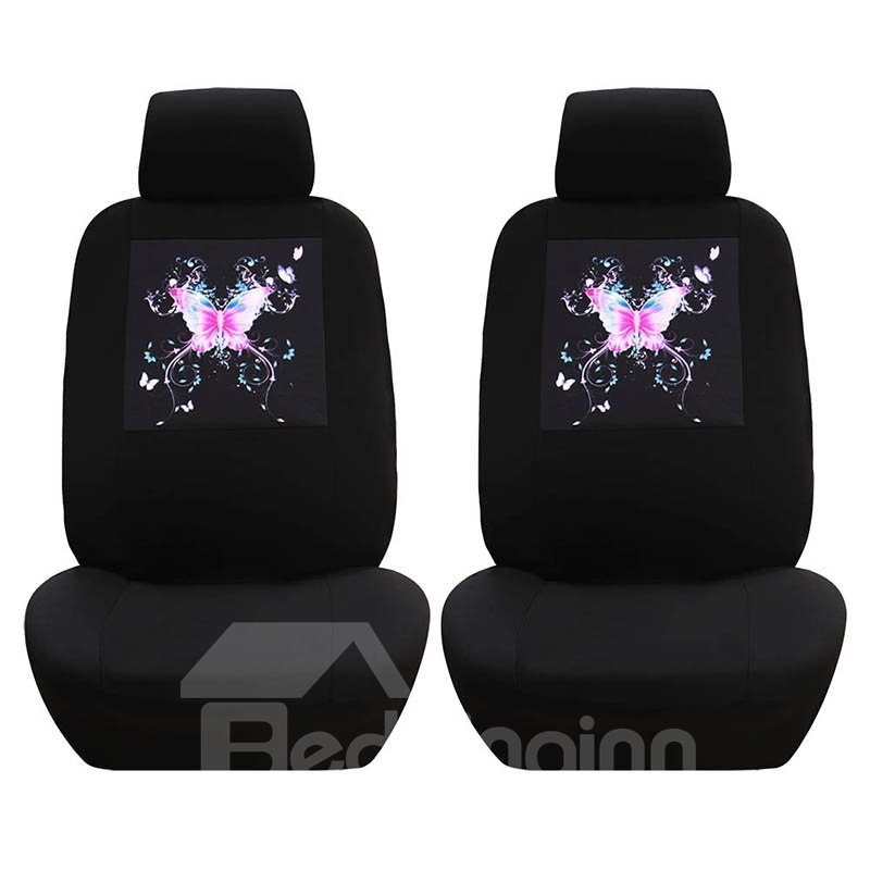Car Seat Covers for Front Seats, Black Butterfly Print Easy To Clean Seat Covers, Premium Neoprene Seat Protectors, Universal Fit Accessories for Auto Truck Van SUV