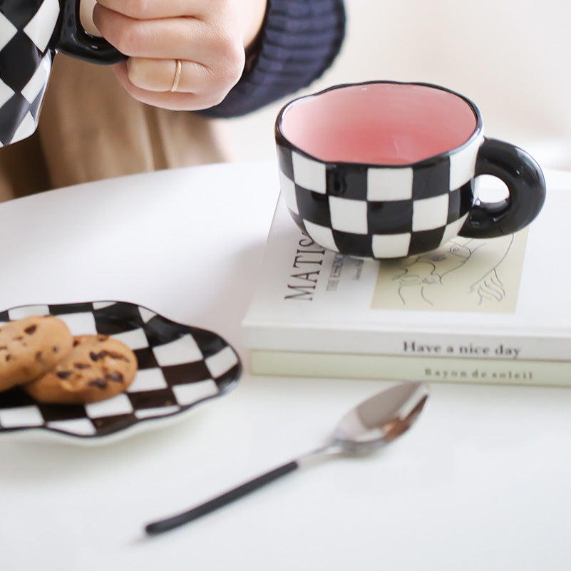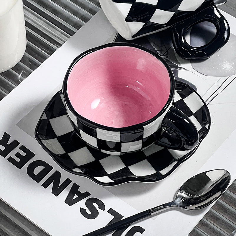 - QUALITY MATERIAL: Made of quality ceramics, this checkered tea cup saucer set can be used for years to come.