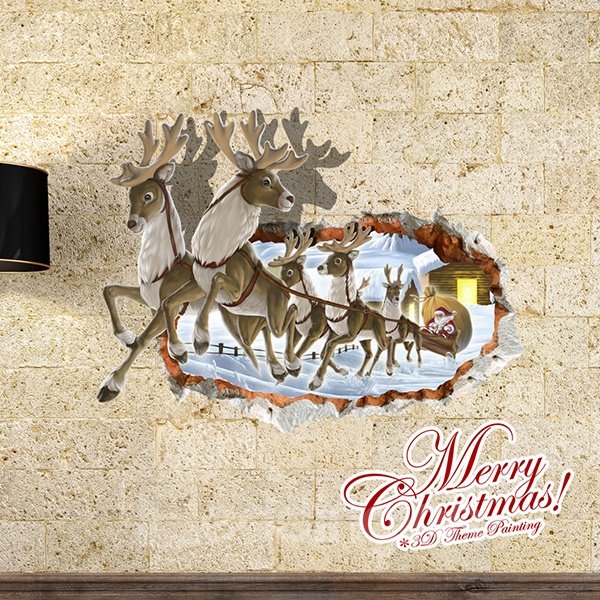 Christmas Reindeer Through Wall Hole Removable 3D Wall Sticker