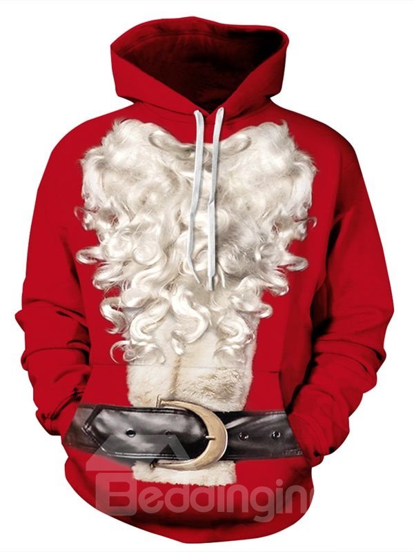 Christmas Style Long Sleeve Santa Claus Beard Pattern 3D Painted Hoodie