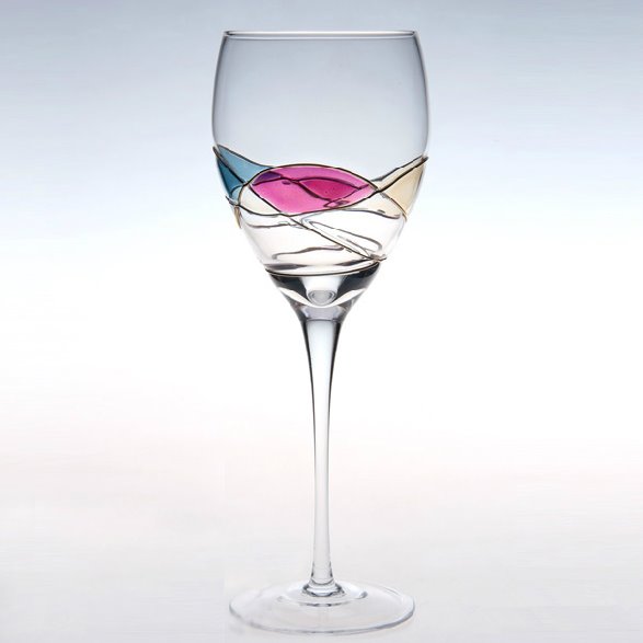 Coloured Drawing/pattern Red Wine Goblet Glasses