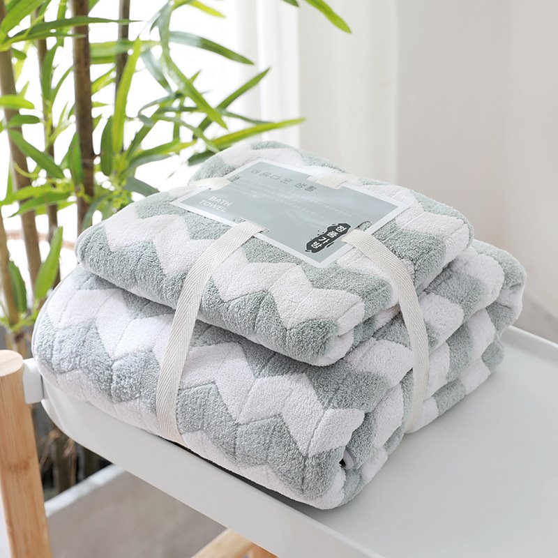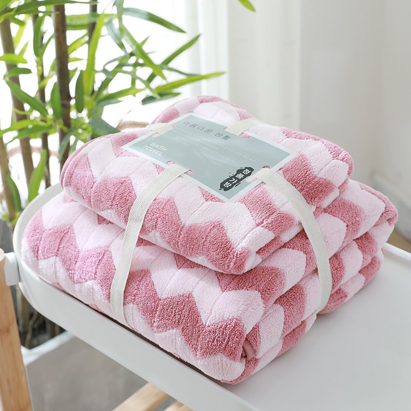 Coral Fleece Bear Soft Bath Tower Set Highly Absorbent Autumn and Winter Warm Face Towel Bath Towel 2 PCS