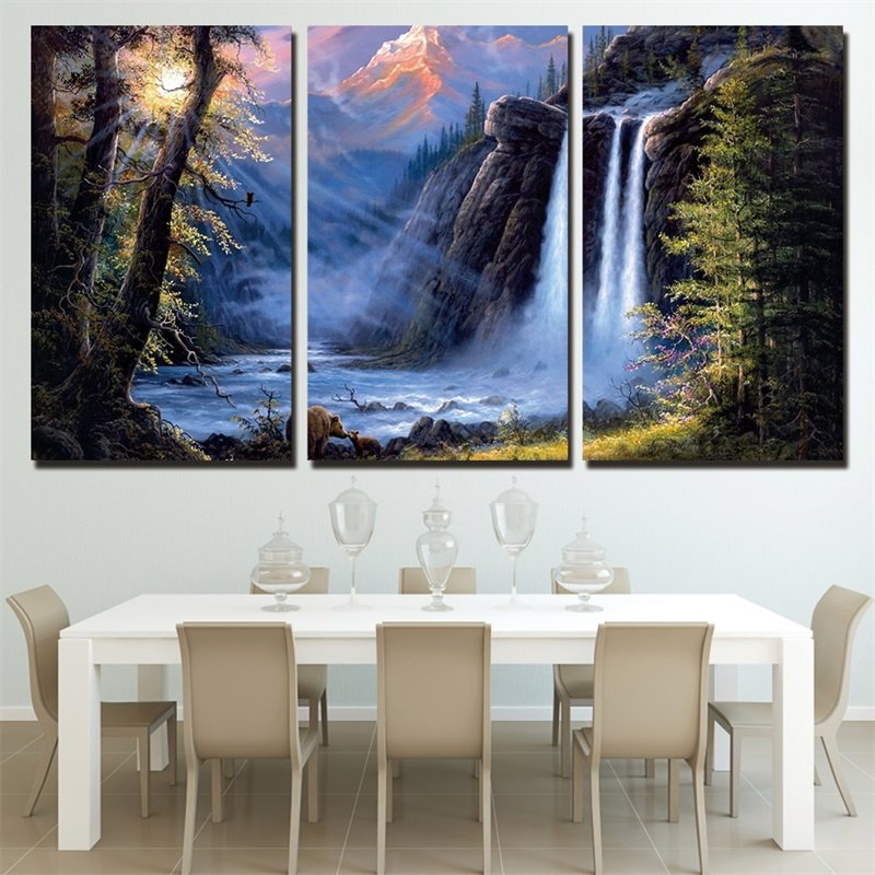 Creative Waterfall Pattern 3 Pieces Hanging Canvas Waterproof Eco-friendly Framed Wall Prints