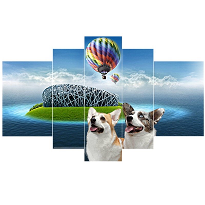 Dogs and Parachute beside Lake Hanging 5-Piece Canvas Eco-friendly and Waterproof Non-framed Prints