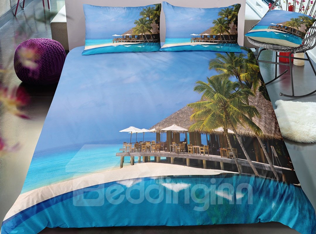Fade Resistant Seaside With Holiday Village Printed 3-Piece 3D Bedding Sets/Duvet Covers