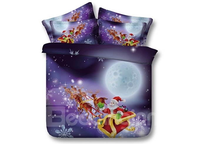 Festal Santa and Sleigh Printed Polyester 4-Piece 3D Bedding Sets/Duvet Covers
