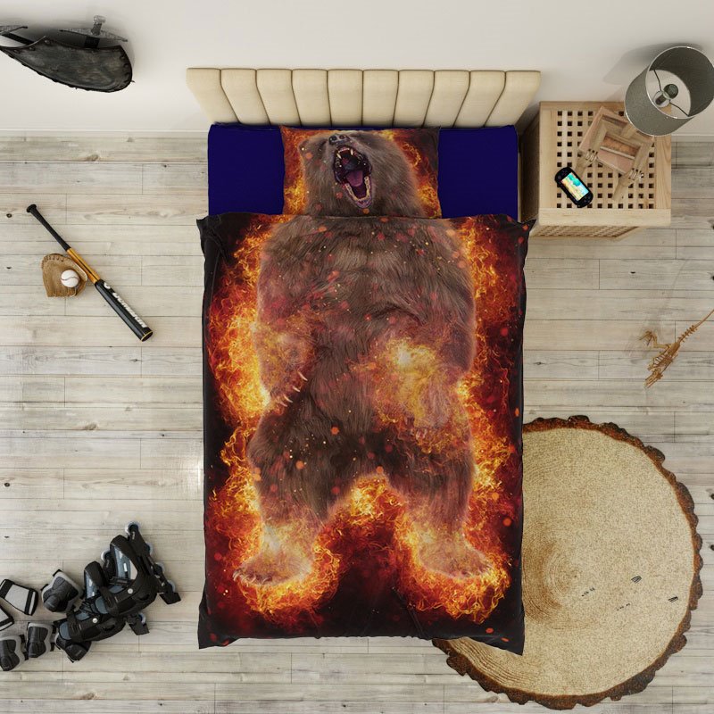 Flame Brown Bear 4-Piece Duvet Cover Set 3D Animal Print Bedding Wear-resistant Breathable High Quality 60s Cotton Satin Soft Comfortable