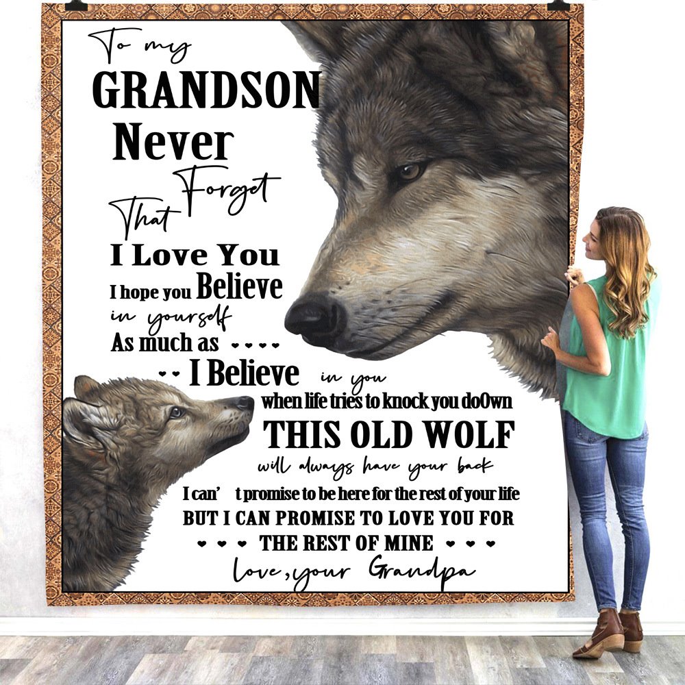 Flannel Fleece Blanket to My Grandson Letter Printed for Baby Boys Positive Encourage and Love Wear-resistant Endurable Skin-friendly All-Season Ultra-soft Microfiber No-fading
