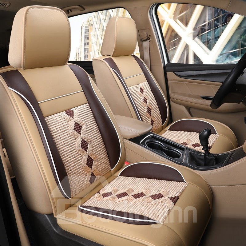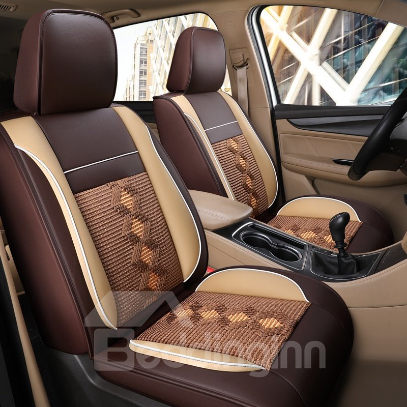 Full Coverage Man-Made Leather And Ice Silk Material Soft Comfortable Universal Single Seat Cover Can Be Customized For Seven-Seater Cars 232 Or 223
