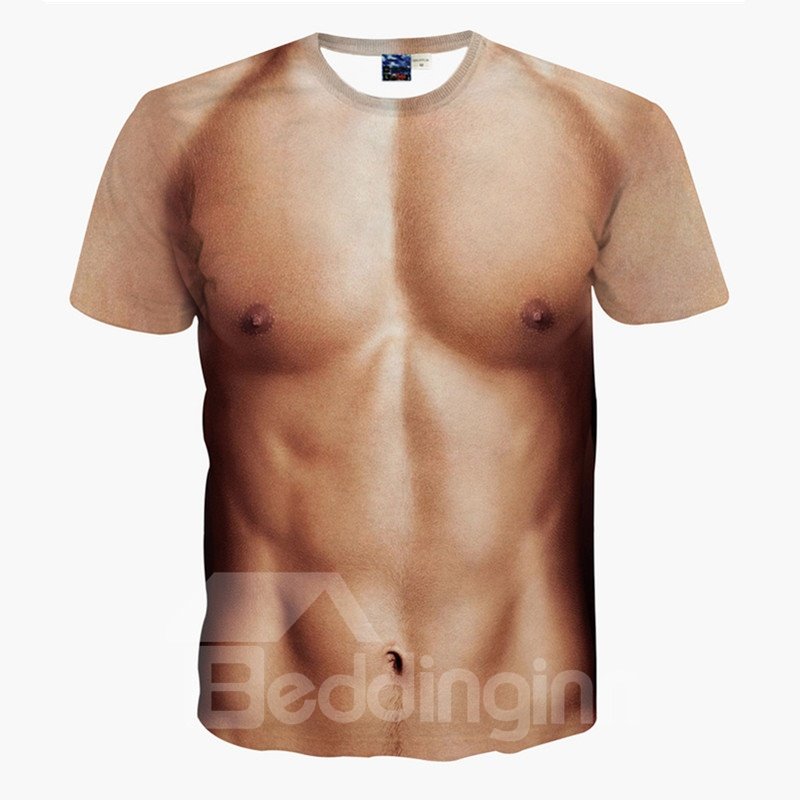Funny Muscle Men Pattern Personality Spandex Round Neck 3D Painted T-Shirt