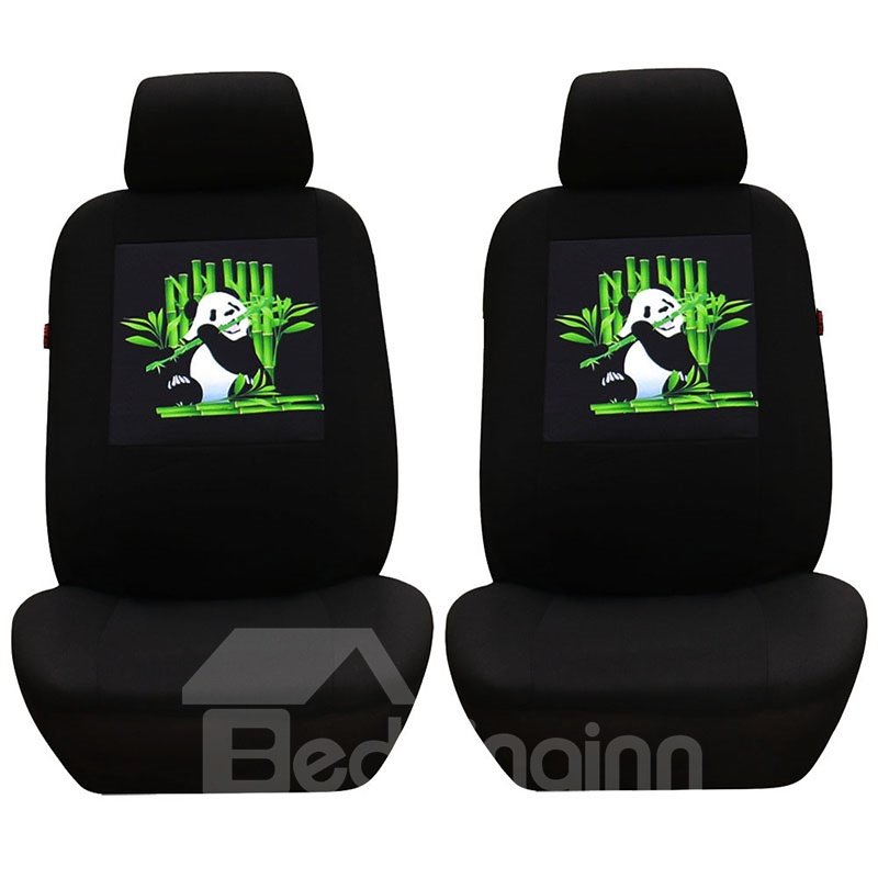 Giant Pandas Eating Bamboo Pattern High Quality Cloth Material All Seasons 2PCS Universal Front Car Seat Covers