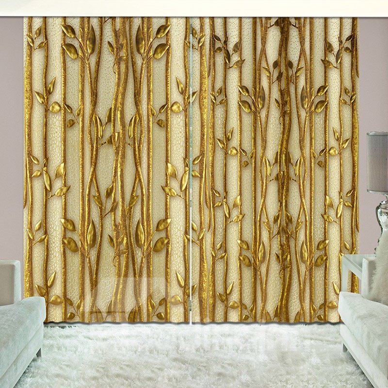 Golden Plants Shading Curtain Light up Room 3D Vivid 2 Panles