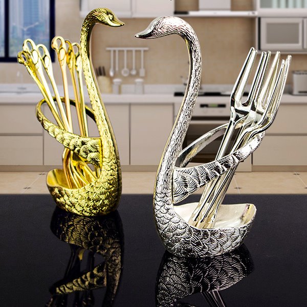 Graceful Swan Design Fruit Dessert Pick Desktop Decoration