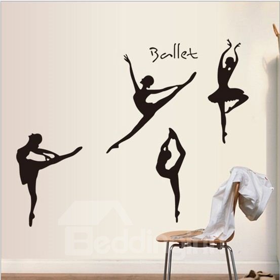 Gracious Black Ballet Girl Pattern Wall Stickers