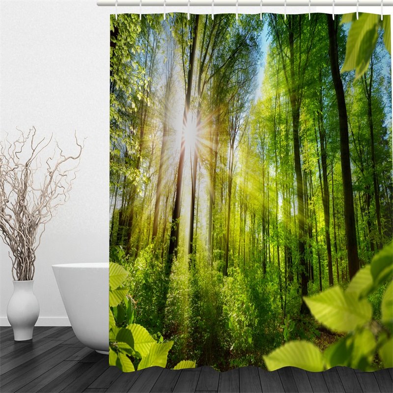Green Forest and Sunshine Polyester Waterproof and Eco-friendly 3D Shower Curtain