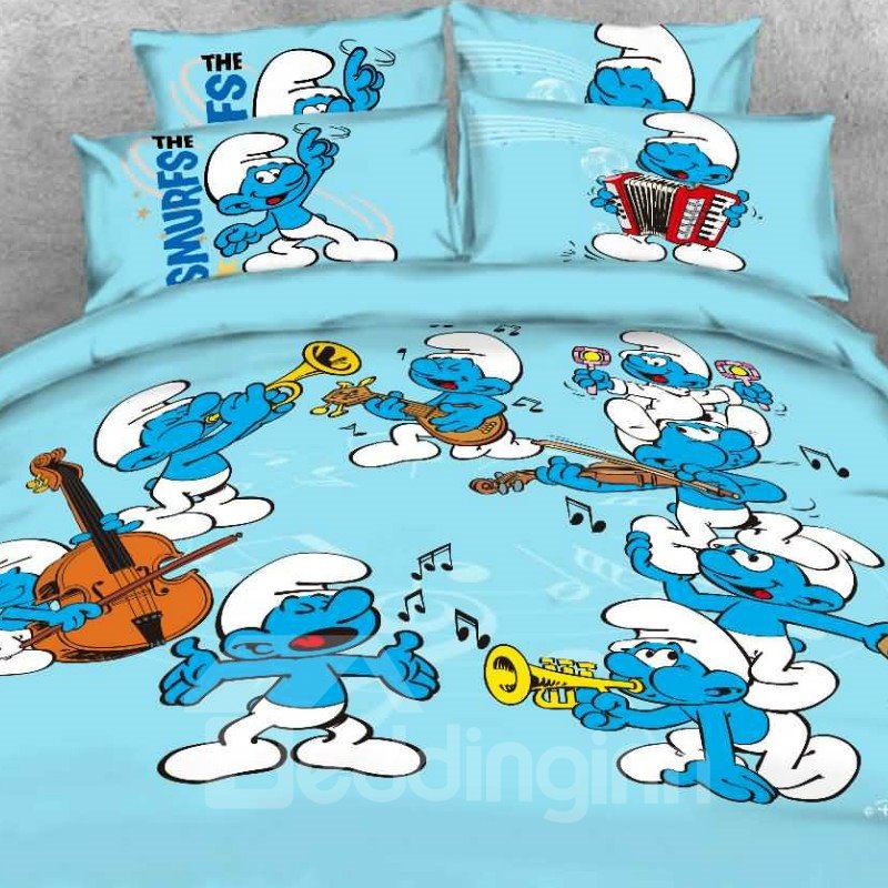 Harmony Smurf with Musical Notes Printed Twin 3-Piece Kids Blue Bedding Sets